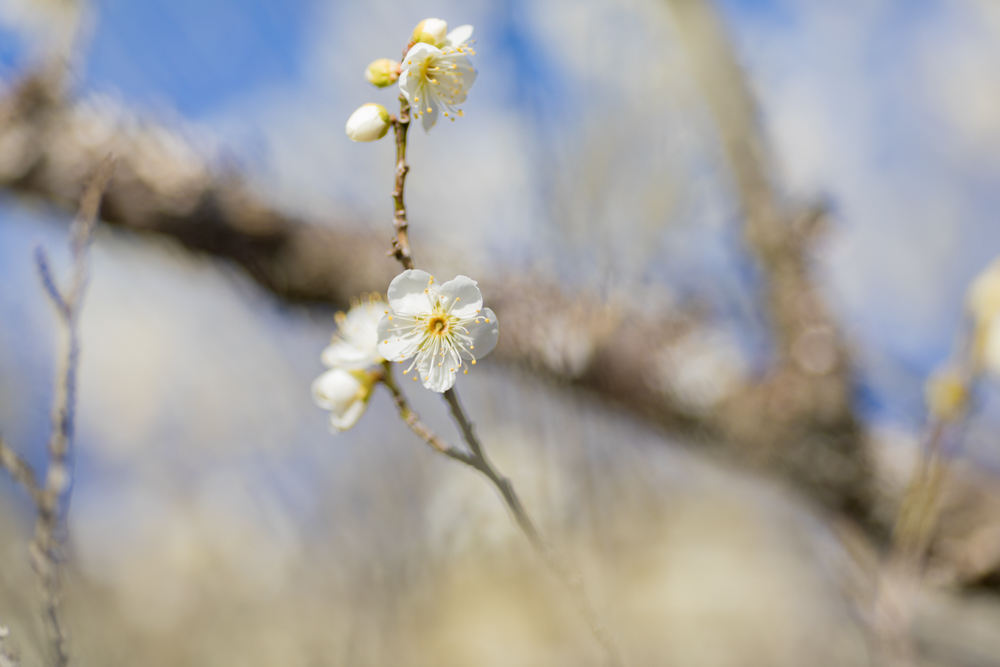 ・白梅→咲き始め。種類によっては八部咲き。